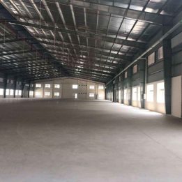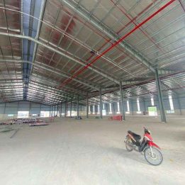 Xưởng chất lượng cao: Xây mới, khung bê tông vững chắc, diện tích rộng, trần cao, ánh sáng và thông gió tự nhiên tốt.
